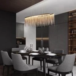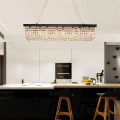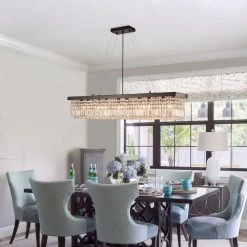 47 in. 10-Light Chrome Crystal Kitchen Island Rectangular Dining Room Chandelier by SILJOY