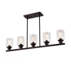 5-Light Oil Rubbed Bronze Pendant Design Pendant Light with Clear Glass Shade by Tatahance