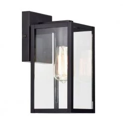5 in. W 1-Light Outdoor Black Wall Sconce with Dusk to Dawn Sensor and Clear Glass by Tatahance