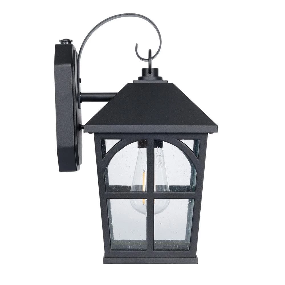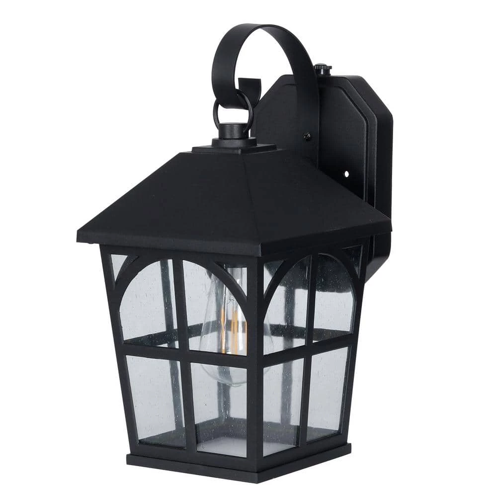 Easily place this 1-Light Black Integrated LED Outdoor Square Wall Lantern Sconce with Dusk to Dawn Sensor in your garage, balcony or porch. It can provide 50,000 hours of LED light. It can add a vintage look to your outdoor area.
