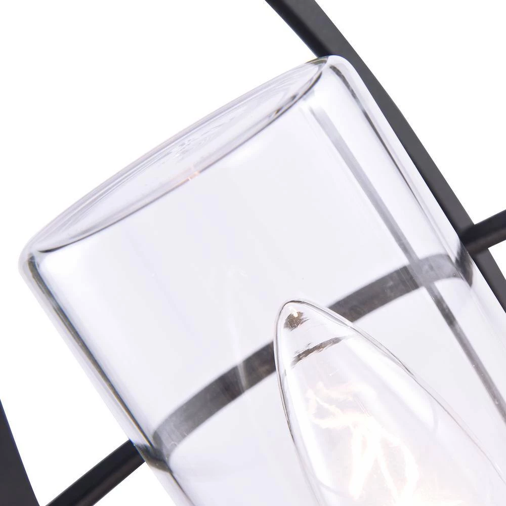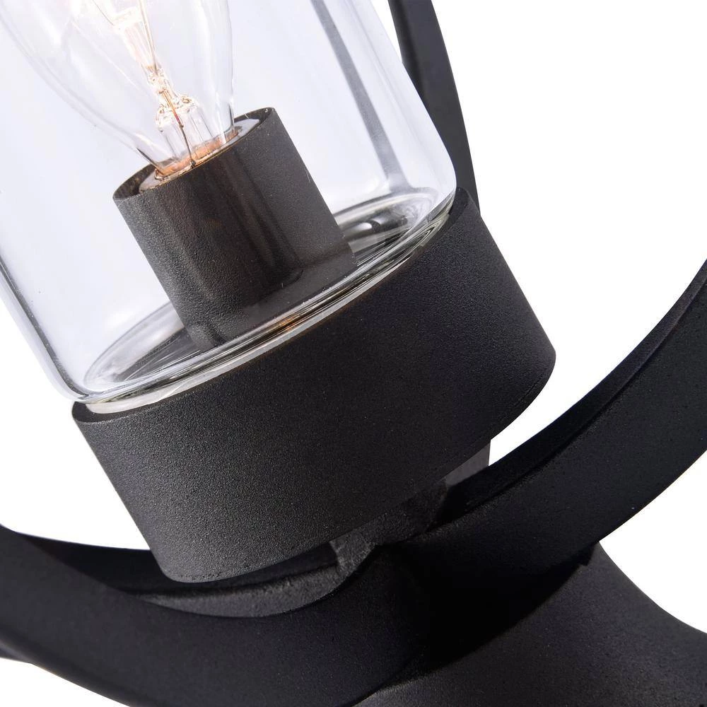 - Crafted of metal in a matte black finish, this modern design showcases a classic silhouette with an open cage topped off with a clear glass tube lampshade