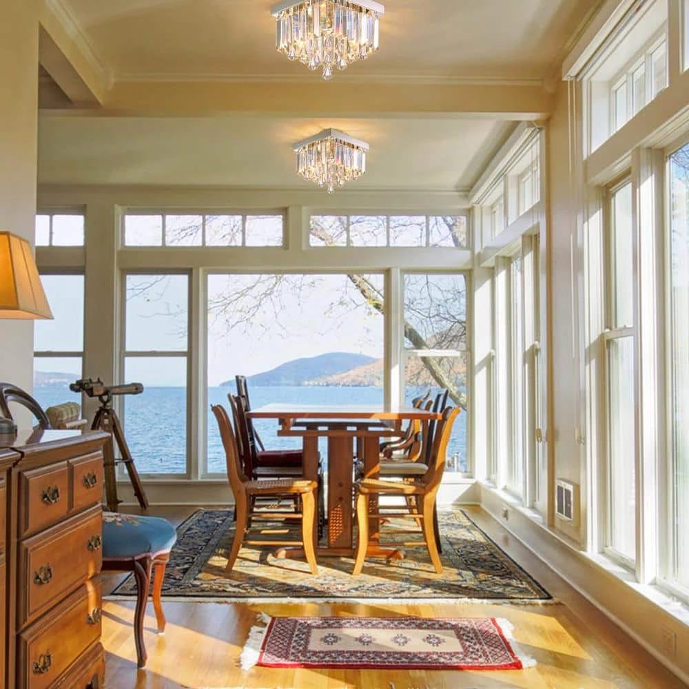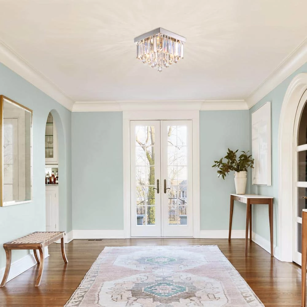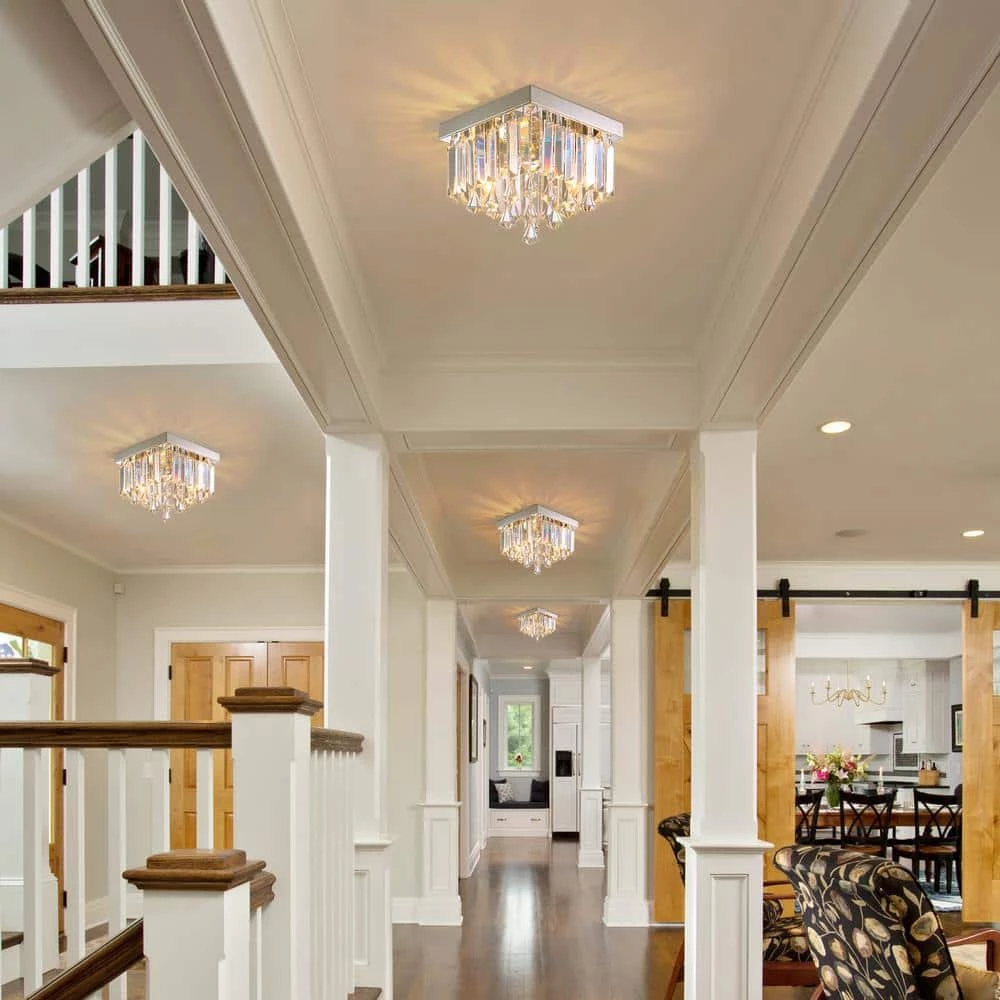 - Optical enjoyment: this eye-catching crystal flush mount brings all the drama of a chandelier to spaces, draped with top class of prisms crystals and hand-painted ceiling plant, this chandelier is guaranteed to leave an miraculous impression to your guests