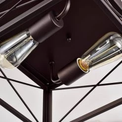 This lighting experience designed for a life well-lived and meant to be shared with those you love, open-caged flush mount. Inspired at its roots by clean lines and a simple sensibility, oil rubbed bronze accents create an open trapezoid around the light source as the entire fixture is topped by a rectangular plate. This uncomplicated design is ideal for illuminating coastal, farmhouse, traditional and bohemian interiors.