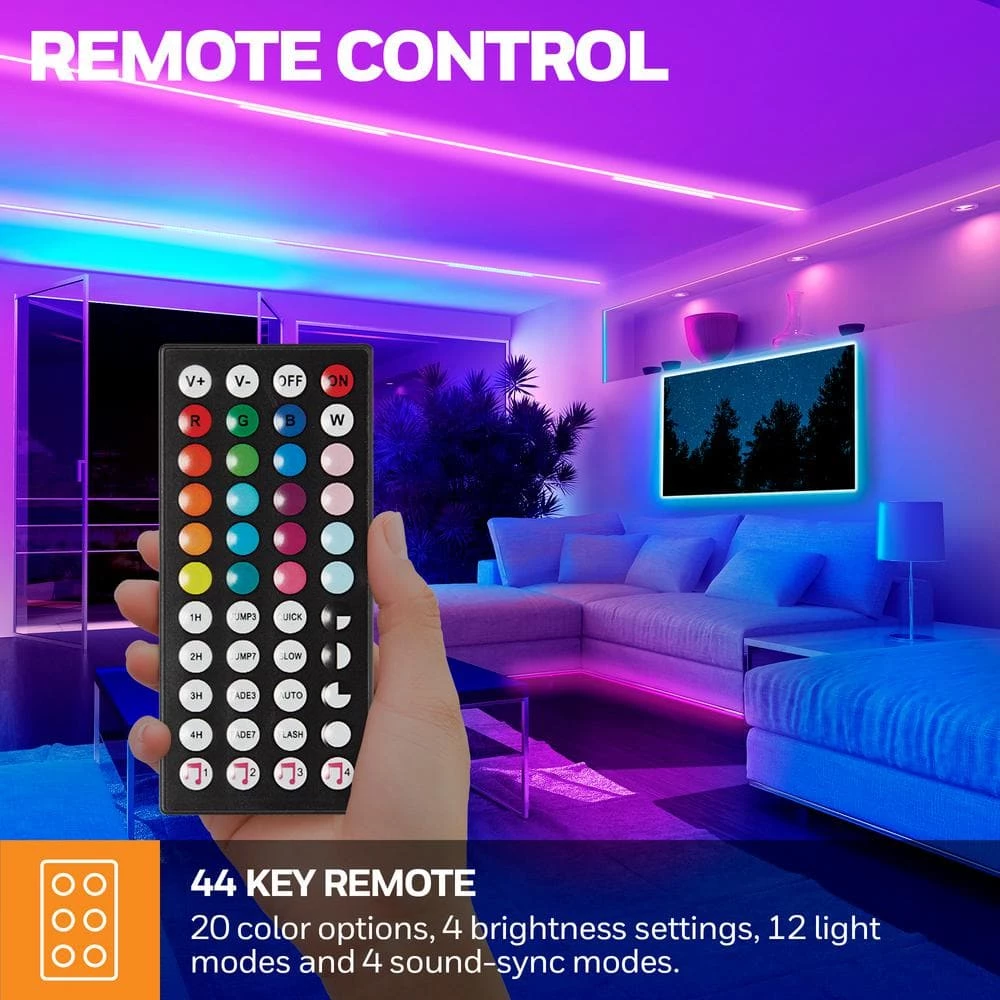 - Remote control: the 44 key remote control allows you to choose from 20 preset LED RGB colors, customizable light colors and 8 effects modes to achieve the desired light effect in any room of your home