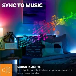- Sound sync: the LED lights are sound reactive so they dance and flash to the beat of your music with 4 different sound-sync modes