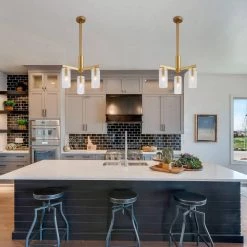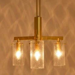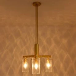 Stylishly simple, this gorgeous 3-light pendant adds tasteful illumination to a kitchen island or dining room. Modern pendant lights up a room in style with its no-nonsense glamour and stately appeal. Constructed from gold finished steel and elegant clear water glass shades, this transitional light fixture gives the space a modern aura. Astonishing light effects and will make your room in a magical atmosphere. A perfect decorative pendant light fixture for your Chrsitams EVE.