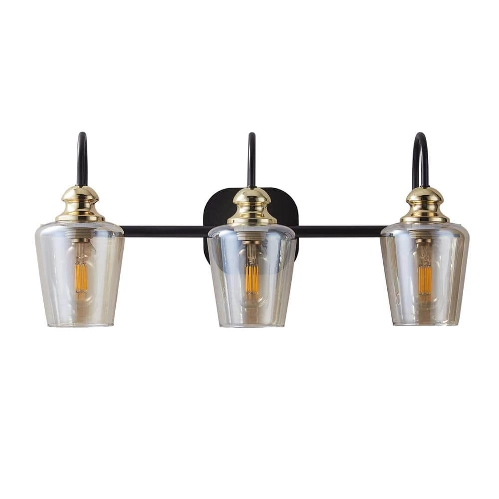 Features a fancy black finish paired with bubble glass shades. These elegant, unique curved neck stems from the fixture to the plate, while a stunning light radiates warmth that will brighten your home. Mount this 3 Light bathroom vanity light in several different areas or decor. Perfect for the living room, bedroom, bathroom, vanity, powder room, dining room, kitchen, office, foyer, hallway, entryway, study, den, entry, stairway, covered patio or porch.