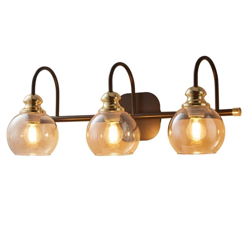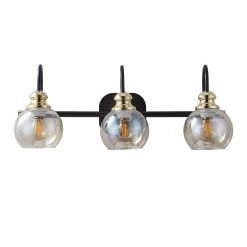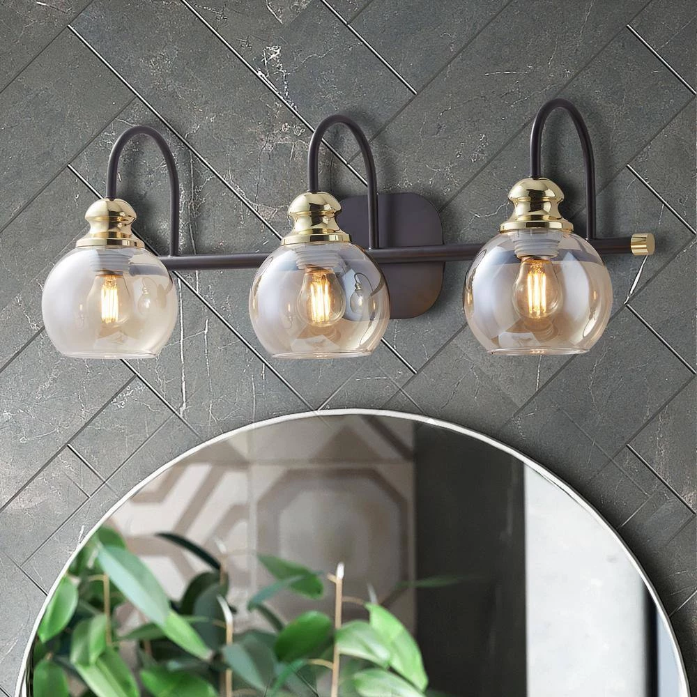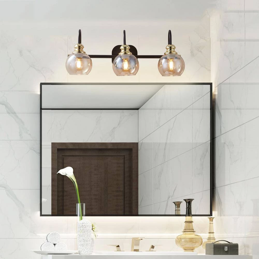 Features a fancy black brush finish paired with bubble glass shades. These elegant, unique curved neck stems from the fixture to the plate, while a stunning light radiates warmth that will brighten your home. Mount this 3 Light bathroom vanity light in several different areas or decor. Perfect for the living room, bedroom, bathroom, vanity, powder room, dining room, kitchen, office, foyer, hallway, entryway, study, den, entry, stairway, covered patio or porch.