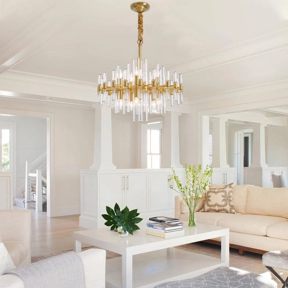 Elegance and glamour will illuminate the room with crystal chandelier collection. Add a decorative and functional finishing touch to a living room, dining room, bathroom or entry. This light is as versatile as it is stylish.
