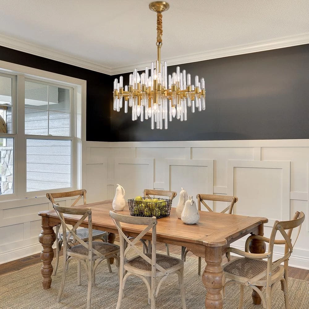 - Brass mid-century chandelier will add a modern contemporary atmosphere of elegance to your home