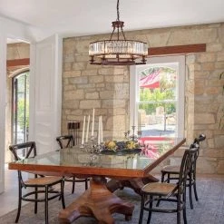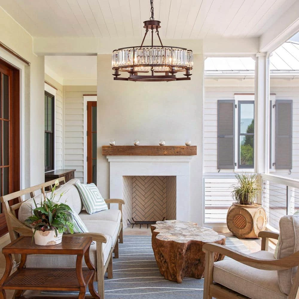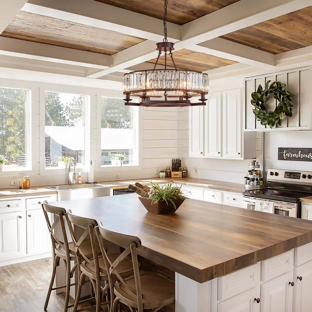 Modern chandelier’s framework is adorned with faceted crystal for a dazzling array whether the light is turned on or not. This contemporary ceiling fixture is completed by hand painted hardware and multiple bulb sockets to make a fabulous focal point in sophisticated dining rooms or living spaces. It is suitable for any kind of room not matter modern or rustic, thereby, it’s a good choice for modern living room and farmhouse.