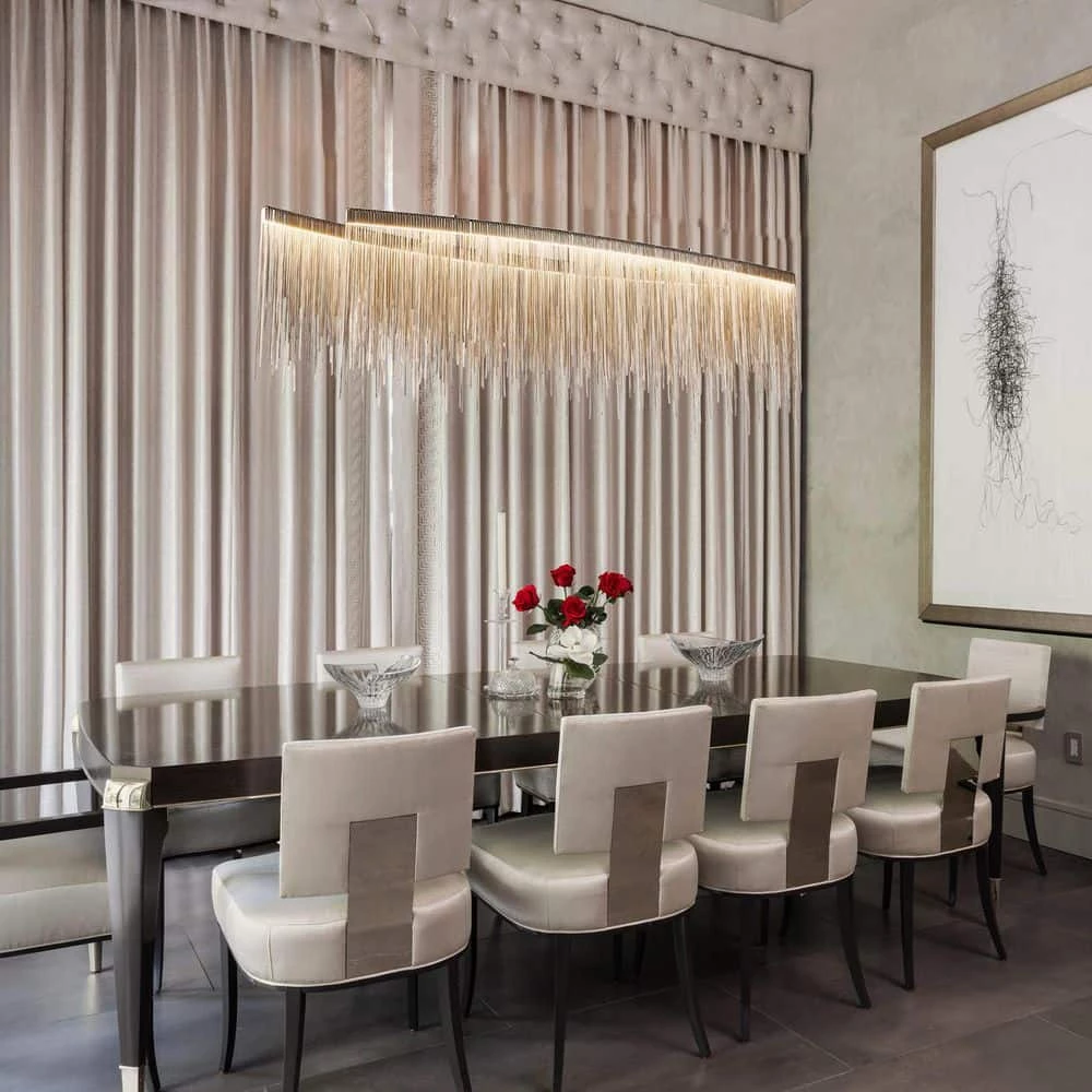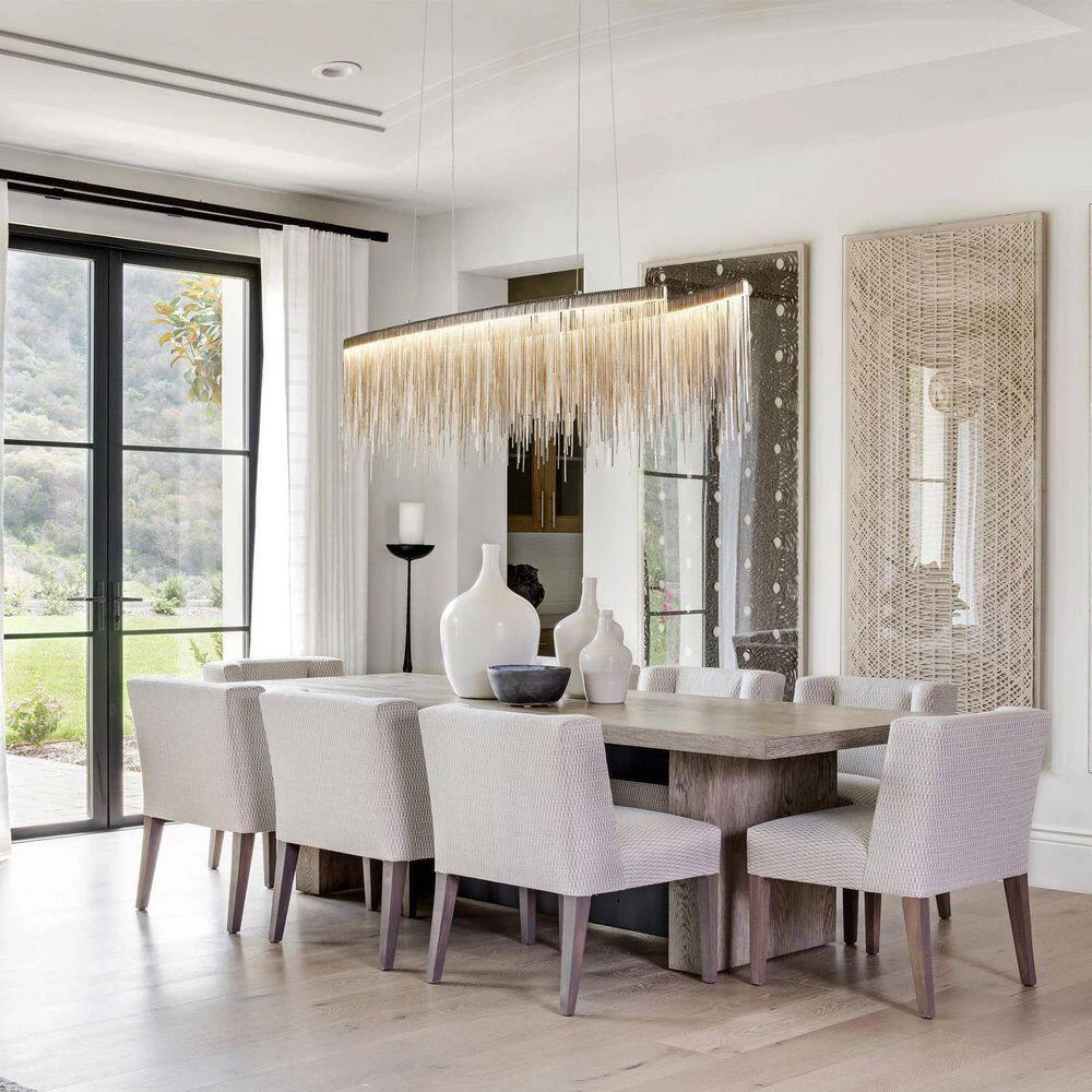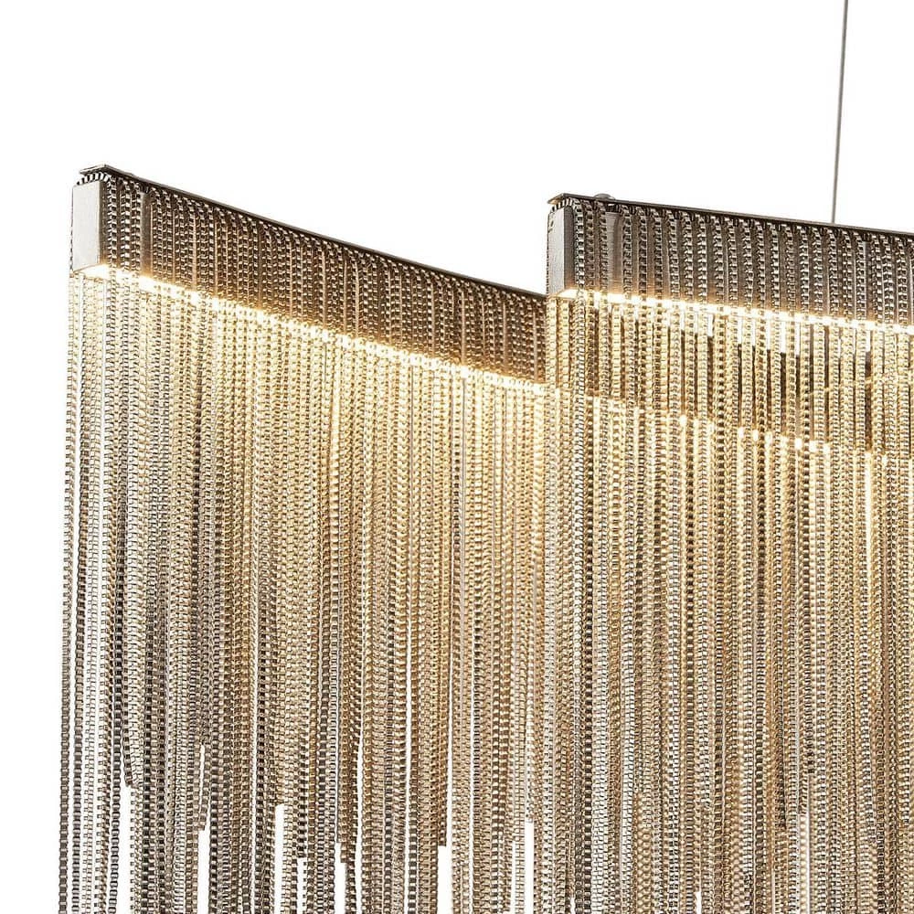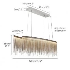 Luxury 47.2 in. led tassels chandelier, which owed two layer staggered tassel led light bar are suspended to form the lamp body, combined with the chrome frame, creating a modern and casual mixed style. The tassel led chandelier brings a serene look to a living room, breakfast nook or vaulted ceiling This versatile small chandelier is just as at home in a Southern-styled abode as it is in a seaside escape. This tasseled chandelier will add a decorative and functional finishing touch to a living room, dining room, bathroom, or entry.