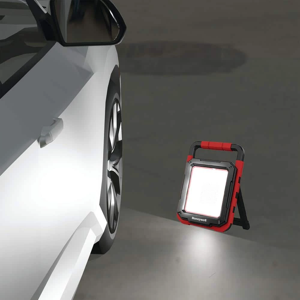 The Honeywell LED Collapsible and Portable Work Light offers up to 3000 Lumens of light output and is designed for easy transport, deployment and storage. It’s easy to position and direct the light just where you need it-even in the most hard-to-reach places, the light features a 5 ft. 2-prong power cord and an adjustable and collapsible head, this work light also has a weatherproof power switch and integrated LEDs which never need replacing, this compact light is beneficial for many uses such as DIY home projects, camping, automotive work, construction sites or anywhere it is difficult to get lighting, these Honeywell lights use only 35-Watt of energy and come with a 5-year warranty.