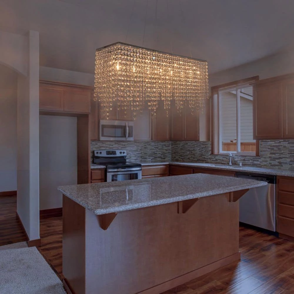 - Island rectangle light is made of polished stainless steel, not easy to rust, adorned with top grade K9 crystals, add light reflection and beauty