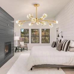- Brass mid-century chandelier will add a modern contemporary atmosphere of elegance to your home