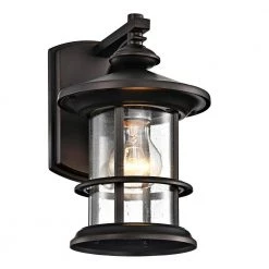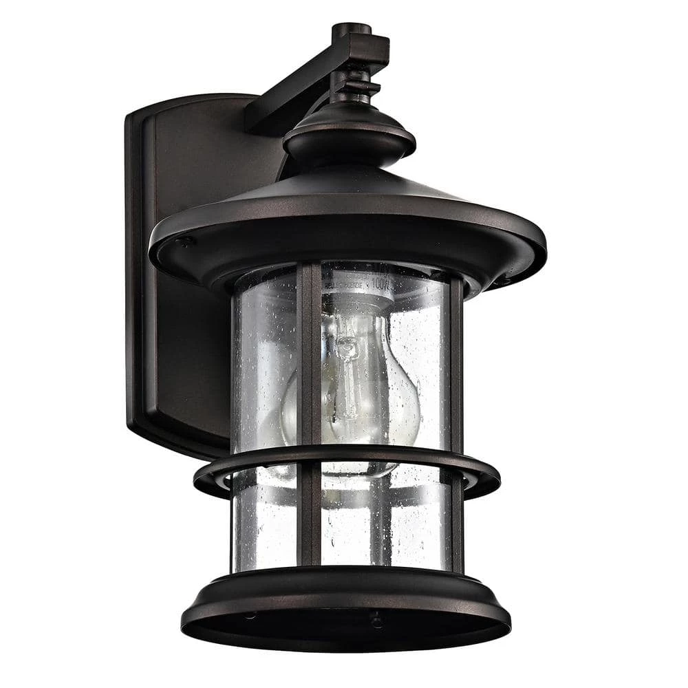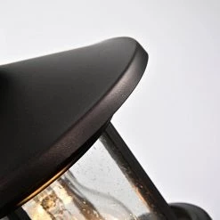 The classic and timeless rustic design will coordinate and compliment the exterior of your home. Weather resistant construction with a long-lasting powder-coated finish make this fixture an outstanding value. The rugged aluminium cage protects the glass shade and adds an interesting design element. Use up to a 60-Watt incandescent light bulb (or equivalent LED bulb) for more light and added security.