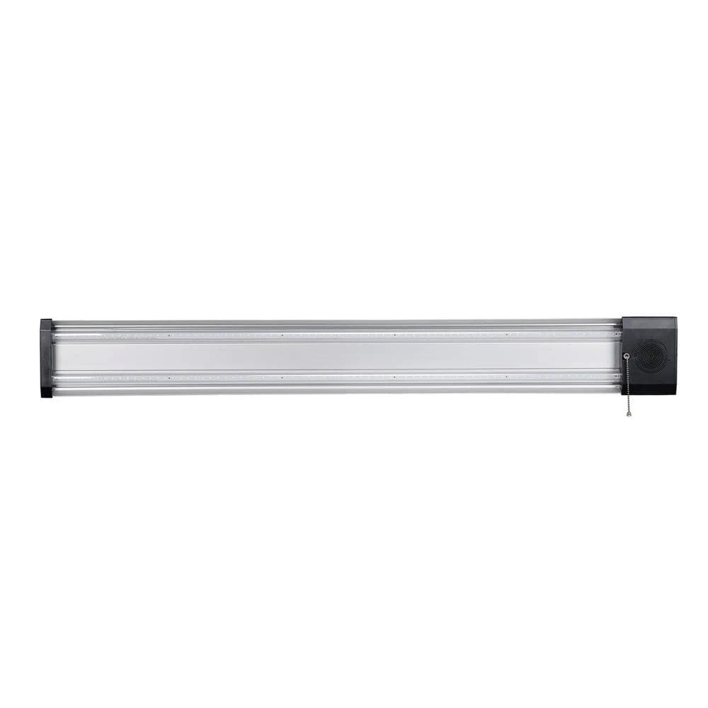 Honeywell’s LED Shop Light with Built-in Bluetooth Speaker is an innovative way to listen to your favorite music, podcasts or sport’s radio while you work. This LED shop light is designed to provide high quality illumination in your favorite work area, garages, entertainment areas and more. This shop light emits a powerful 5000 Lumens of bright white light while using around only 50-Watts of electricity. The Honeywell LED Shop Light ensures a long-lasting, energy-efficient consumption. Read more about the highlights of the LED shop light with Bluetooth speaker below: Hanging chain included Integrated LEDs/No bulbs to replace Bluetooth capability 5000 lumens of bright white light Consumes little energy Linkable feature For additional questions or concerns regarding this product, please contact the Manufacturer’s Customer Service Department.