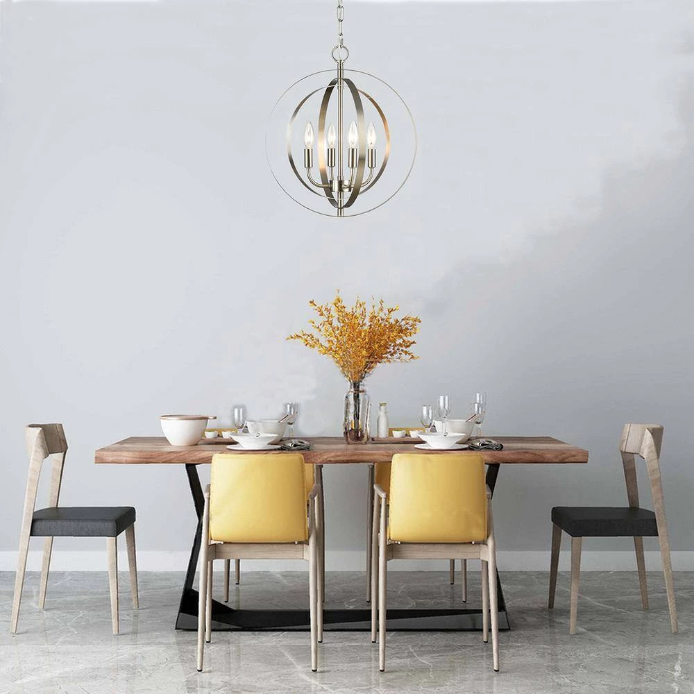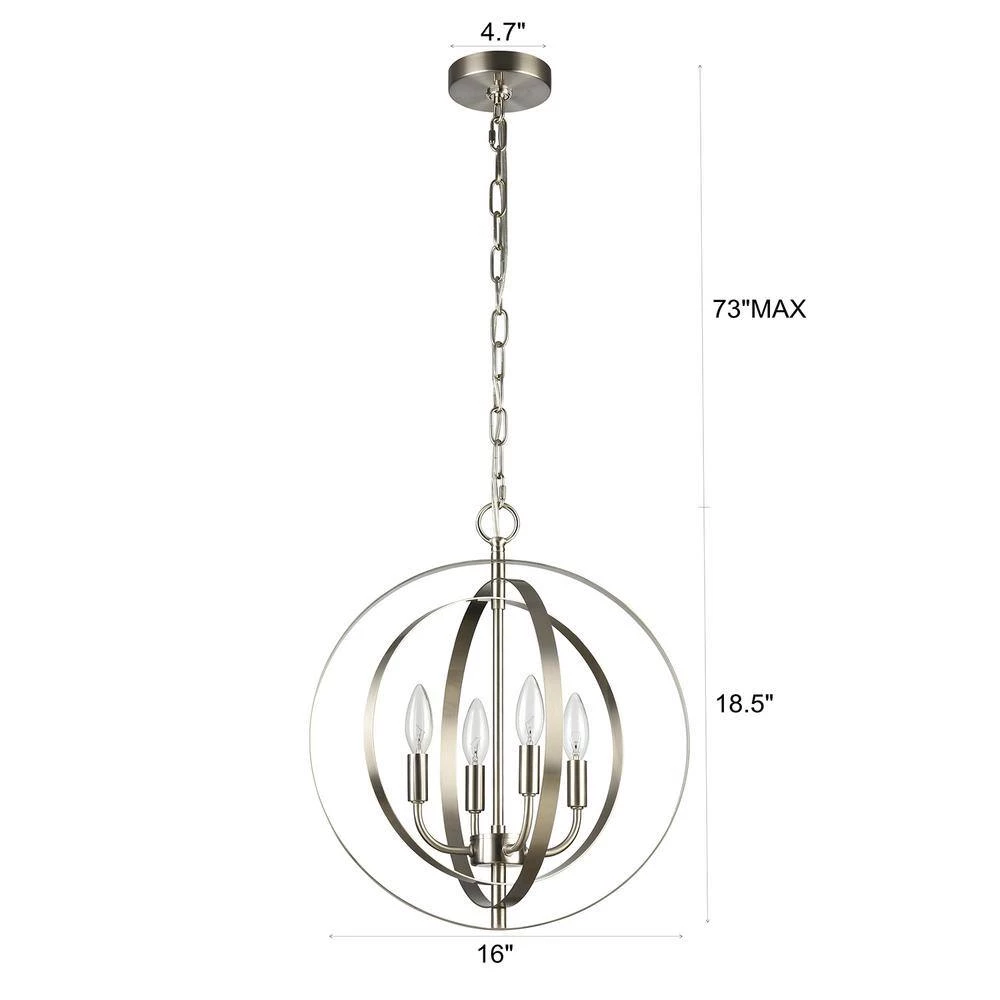 This elegant 4-light pendant makes a beautiful addition to any home or business. Its understated, modern design lends any room an air of sophistication. The brushed nickel finish add warmth to any color scheme. (Note: It takes 4 60-Watt bulbs).