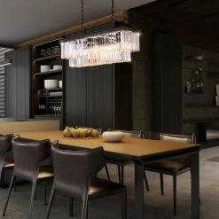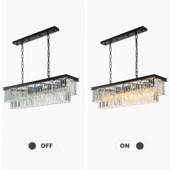 - Hand-painted elegant black surface and hand-picked first class transparent prisms make this pendant light suitable to any place at your house such as dinning room and living room, bring optical enjoyment to your and make a deep impression on your guests