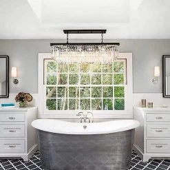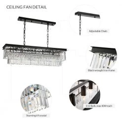 The perfect MODERN BLACK decorative ISLAND CHANDELIER with a MATTE BLACK PAINTED shade and CLEAR CRYSTAL. this pendant chandelier can house 7 standard E12 bulbs up to 40-Watt,(bulbs not included), Give this chandelier a special spark by installing your favorite bulbs. They will add a nice look and gorgeous lighting to your home dor. After installation, you will get amazing light. crystal is easy to install. and the elegant design and crystal chandelier lighting is suitable for KITCHEN ISLAND, DINING ROOM, LIVING ROOM, and LARGE BATHROOM.