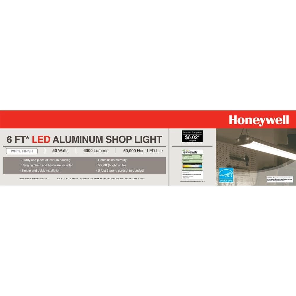 The Honeywell LED Shop Light allows you to light up your surroundings in an efficient, cost effective way. This one piece LED Shop Light by Honeywell features an aluminum/plastic construction and a White finish. Producing 6000 Lumen output at 50-Watt, Honeywell’s LED Shop Light is a definitive solution for any number of lightning needs that can effectively reduce the amount on your annual electric bill.