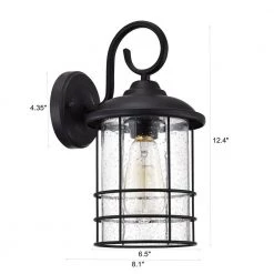 The classic and timeless rustic design will coordinate and compliment the exterior of your home. Weather resistant construction with a long-lasting powder-coated finish make this fixture an outstanding value. The clear glass sides and cylinder shaped frames are complimented by matching sloped roofs, allowing these wall lights to provide all-around illumination in porch areas, walkways and driveways. The rugged seel cage protects the glass shade and adds an interesting design element. Use up to a 60-Watt incandescent light bulb (or equivalent LED bulb) for more light and added security.