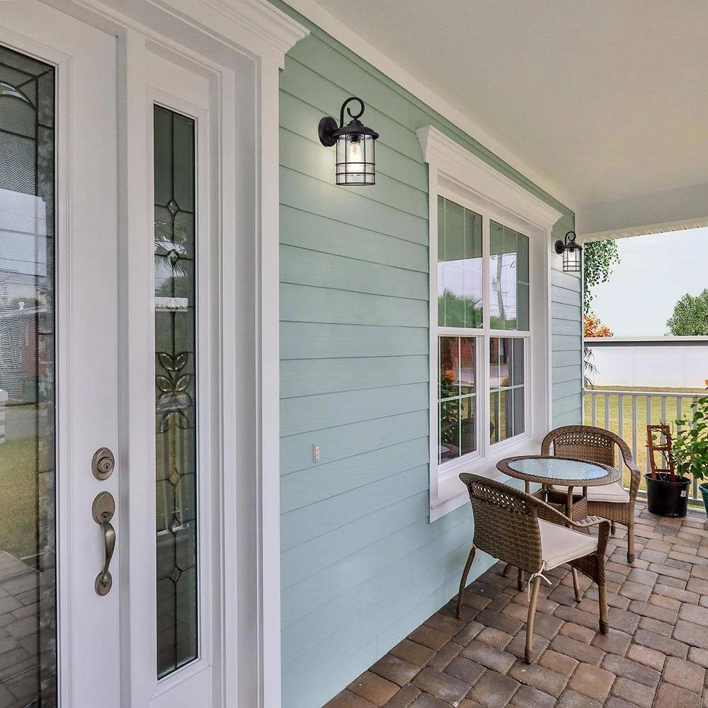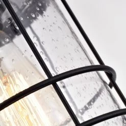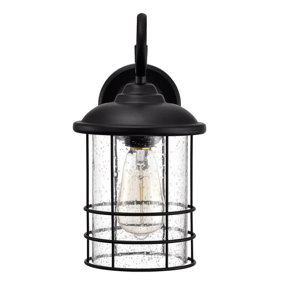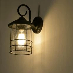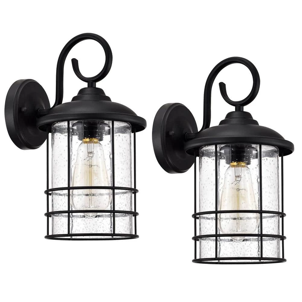 The classic and timeless rustic design will coordinate and compliment the exterior of your home. Weather resistant construction with a long-lasting powder-coated finish make this fixture an outstanding value. The clear glass sides and cylinder shaped frames are complimented by matching sloped roofs, allowing these wall lights to provide all-around illumination in porch areas, walkways and driveways. The rugged steel cage protects the glass shade and adds an interesting design element. Use up to a 60-Watt incandescent light bulb (or equivalent LED bulb) for more light and added security.