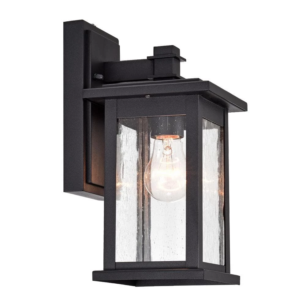 The classic and timeless rustic design will coordinate and compliment the exterior of your home. Weather resistant construction with a long-lasting powder-coated finish make this fixture an outstanding value. The rugged steel cage protects the glass shade and adds an interesting design element. Use up to a 60-Watt incandescent light bulb (or equivalent LED bulb) for more light and added security.