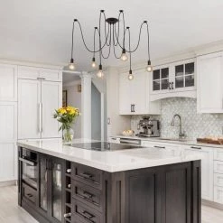 With its matte black finish and modern shape, this 6-light pendant chandelier exudes a cool, functional vibe. Made of durable metal, the transitional style shade provides a clean, casual look and general interior lighting. Use it anywhere from above the kitchen table or bar to the living room or above the lounge area in the studio, game room, or studio. The 79-inch suspension wire facilitates free-adjustment hanging installations