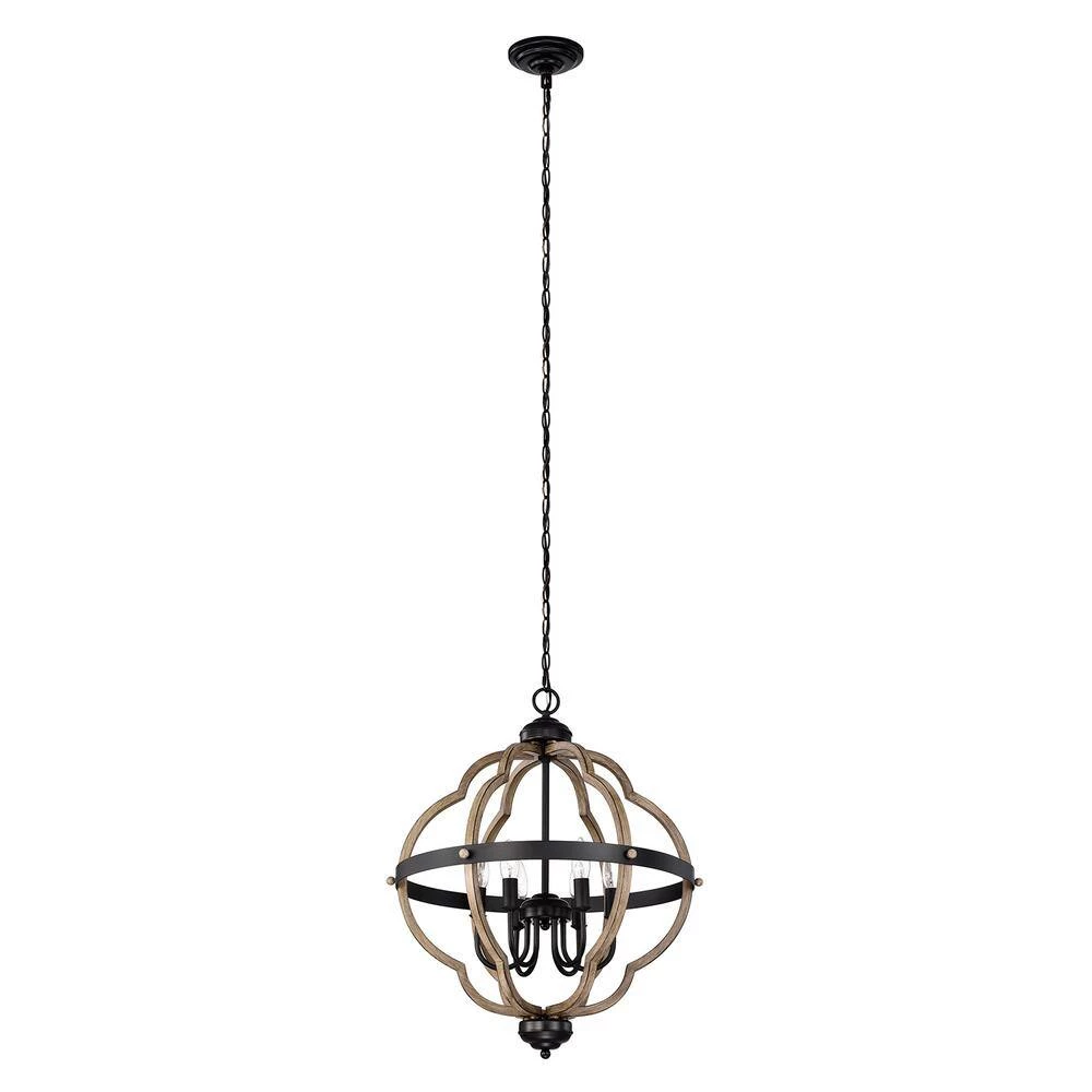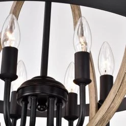 This elegant 6-light pendant makes a beautiful addition to any home or business. Its understated, modern design lends any room an air of sophistication. The black and antique wood finish add warmth to any color scheme. (Note: It takes six 40-Watt bulbs).