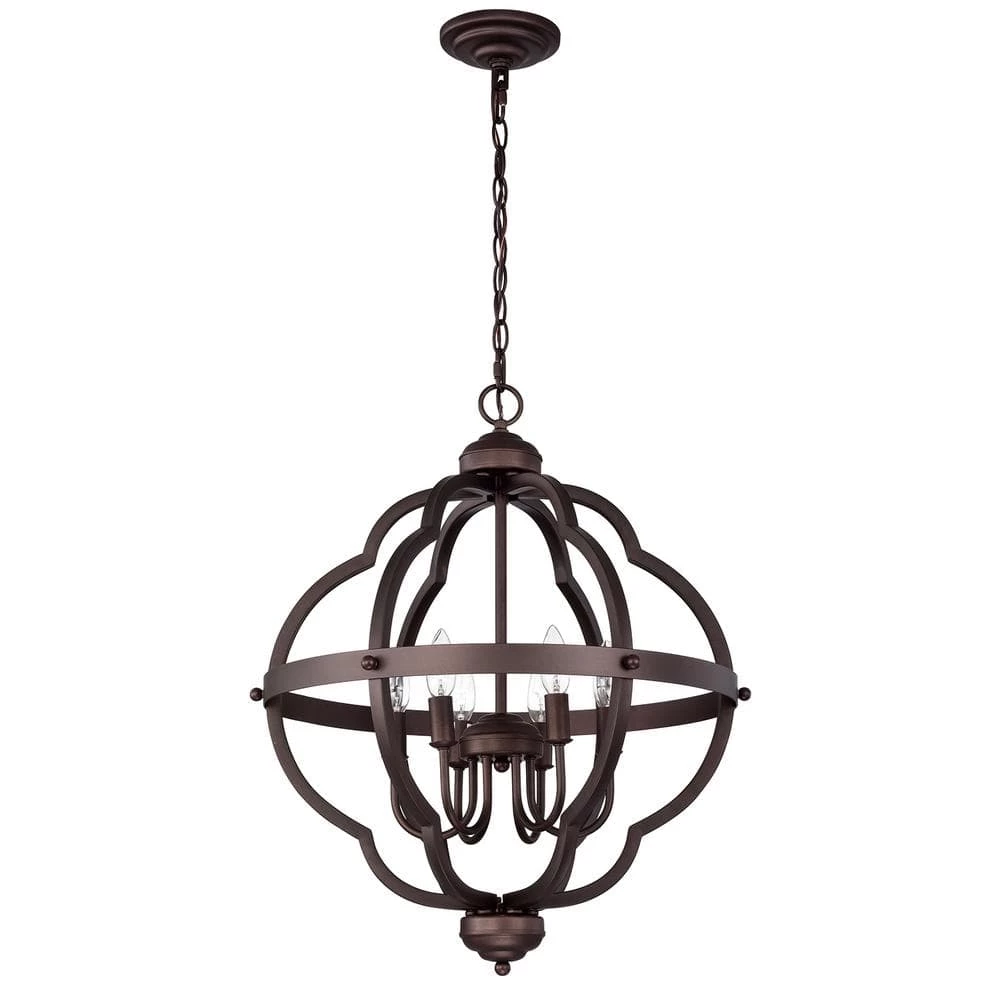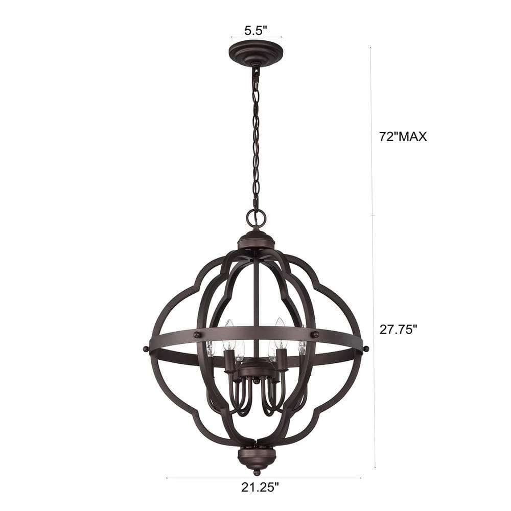 This elegant 6-light pendant makes a beautiful addition to any home or business. Its understated, modern design lends any room an air of sophistication. The oil rubbed bronze finish add warmth to any color scheme. (Note: It takes six 40-Watt bulbs).