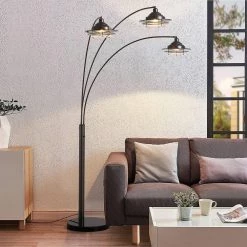 Reissued from the Nova vault with updates for today’s technology, the Paramount 3Lt Arc lamp is a mid-century classic. This lamp is crafted in a sleek gunmetal finish with 3 unique 3-ring acrylic lamp shades that capture the eye whether the lamp is turned on or off. The acrylic shades are tiered in greyscale in a light, medium and dark grey finish to create an ombre effect. The sturdy marble base ensures that once positioned, the lamp stays in place. Arc lamps are an exquisite solution for overhead light without the need to call an electrician. Equipped with a dimmer switch, the user can decide if the ringed shades provide light to read by or to just enjoy a warm glow. When used in conjunction with a smart switch, Paramount is compatible with Google Assistant, and Apple Home, and can be automatically turned on/off manually, by voice activation, or by scheduled settings.
