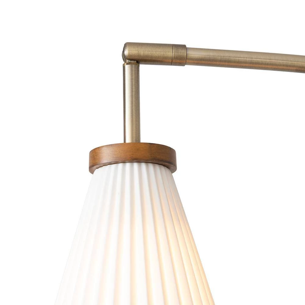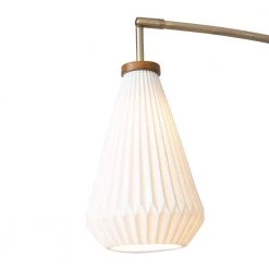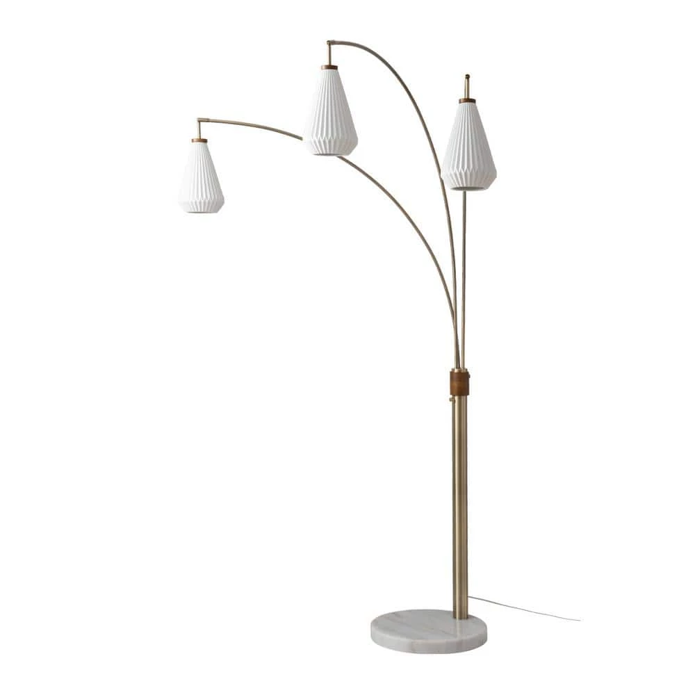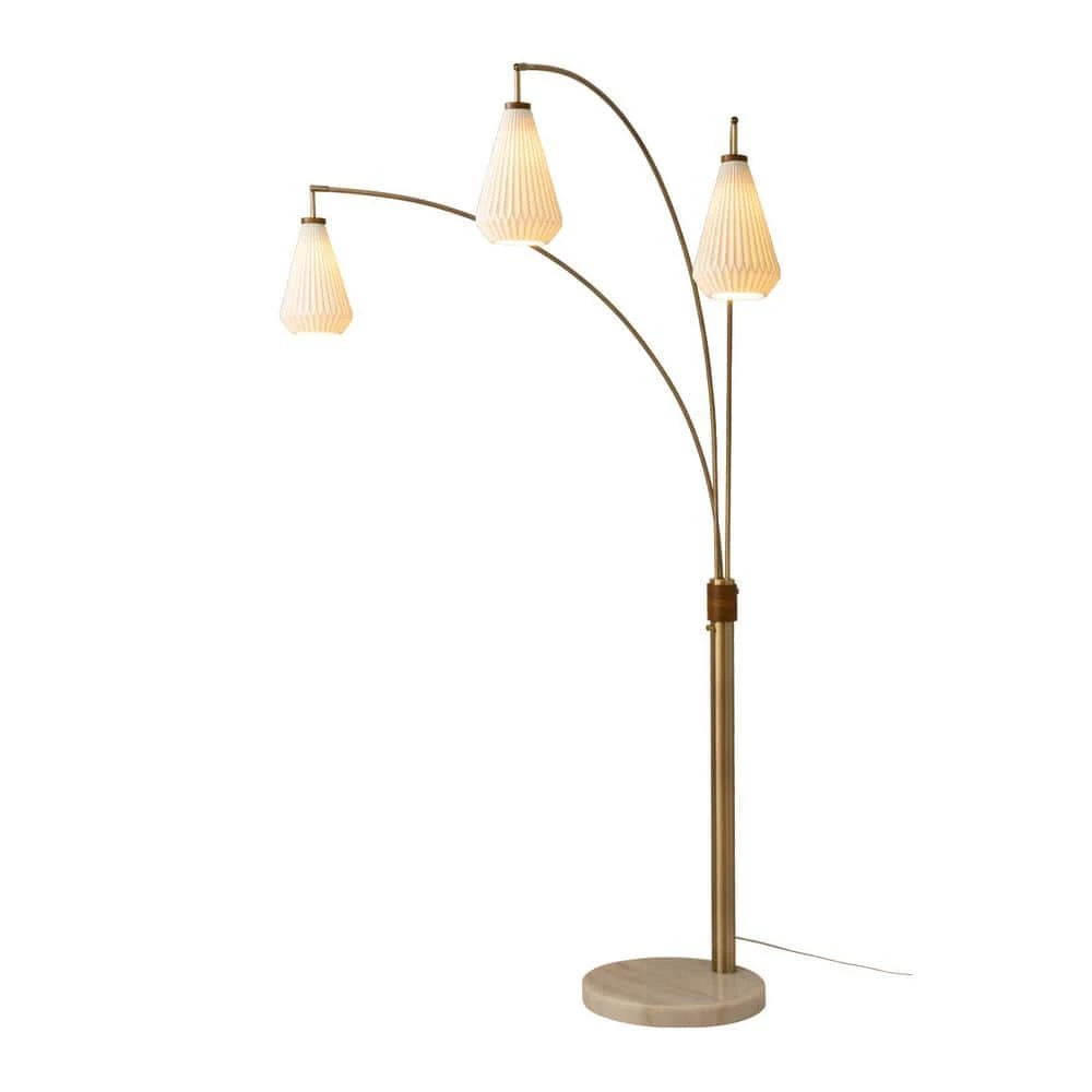 The Concord 3-Light Arc Lamp creates pleasing illumination to the modern room. Crafted from fine porcelain, each of the 3 shades glows ethereally when the lamp is on. Featuring a walnut and weathered brass column, the Concord 3-Light Arc Lamp creates a stately showpiece without overwhelming the comfort of the space. The dimmer switch conveniently located on the column allows the user to select the amount of light needed for any occasion. The marble base ensures the lamp stays in place. When used in conjunction with a smart switch, Concord is compatible with Google Assistant, and Apple Home, and can be automatically turned on/off manually, by voice activation, or by scheduled settings.