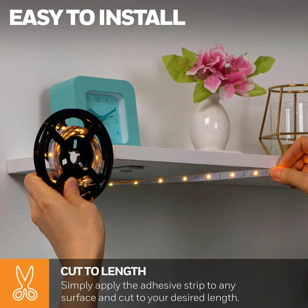 - Easily mountable: the flexible warm white strip light allows you to cut the strip to your desired length and easily mount on any surface in your home with the strong adhesive backing