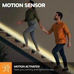 Add ambient lighting to any room in your home with a 9.8 ft. flexible LED Warm White Motion Activated Light Strip. The motion activated smart LED strip lights can sense you coming and automatically turn off when they no longer sense motion. Light the way up the stairs, add ambient lighting under the kitchen or bathroom cabinets, or simply add warm white ambient color to any room in your home. The flexible strip light allows you to easily cut the strip to your desired length and mount on any surface in your home with the strong adhesive backing. The lights are USB or battery powered so you don’t have to worry about extra-cords or plugging into a wall outlet for power, just plug in the USB or add batteries and you are ready to go. Included in-package: (1) Warm White LED Light Strip, (1) Remote Control, (1) Motion Sensor, Adhesive Tape and (1) USB Power Connector.