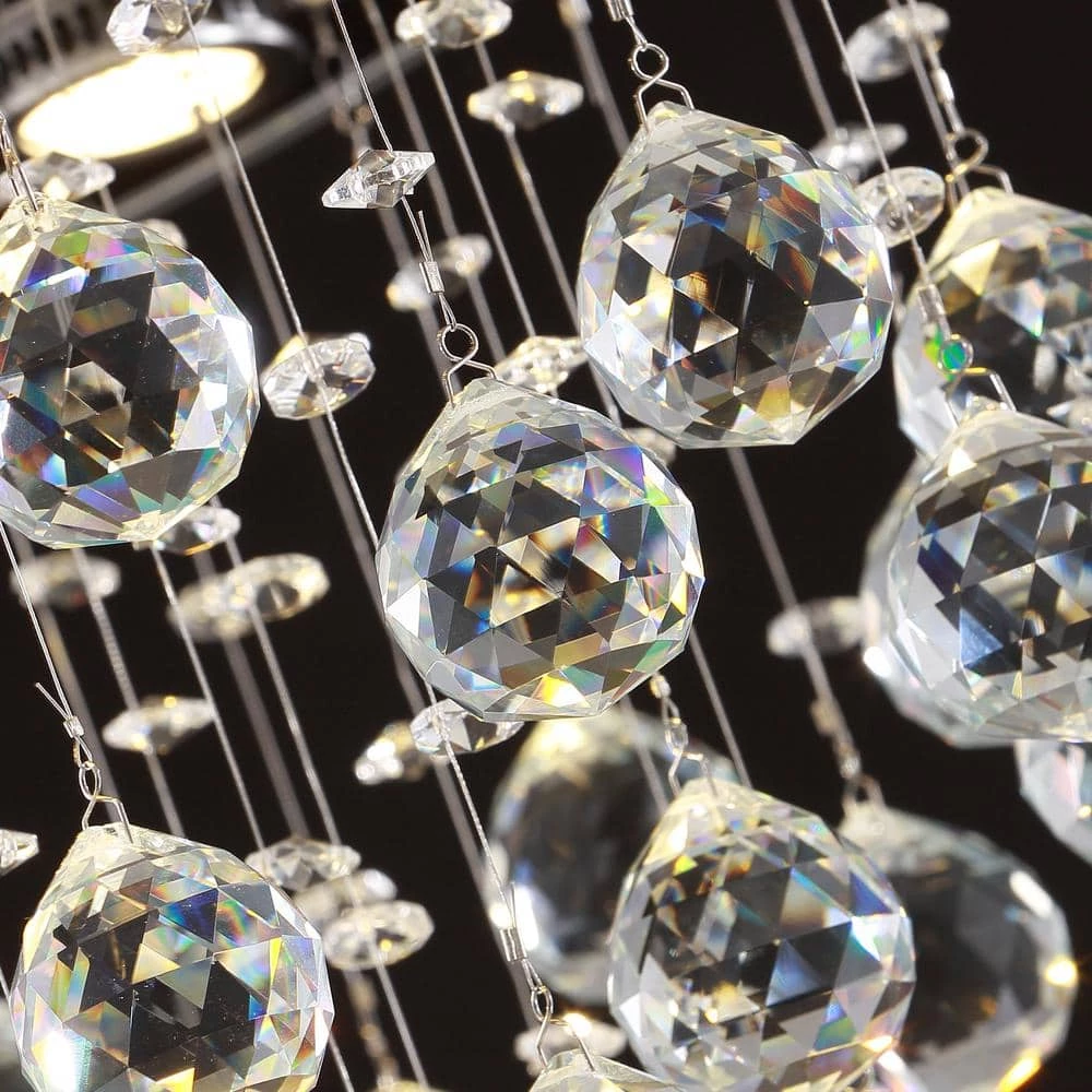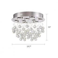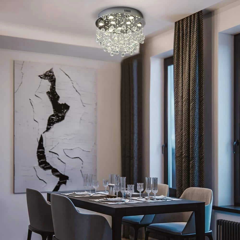 Bring the sparkle and glamor of the roaring twenties to your home with our 9-bulb crystal chandelier ceiling light fixture. Classically designed, this flush mount chandelier creates an appealing glow thanks to its five bulbs nestled inside a glittering crystal-bead shade. With its chrome canopy, this chandelier effortlessly combines timeless charm with a polished shine, resulting in a design that compliments any style of home decor from rustic to modern. Let its nine GU10 40W bulbs shine new light on your bedroom, living room, or entryway. Dimmer compatible but not included, this crystal chandelier can go from sultry or cozy dim to vividly and sparkling bright. The clear instructions and design make installation simple once the wiring is ready for this crystal ceiling light.