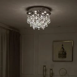 - Modern gorgeous design: this elegant drum crystal flush mount ceiling light has a chrome finish shade and luxury crystals which create gorgeous visual effects