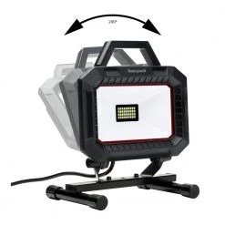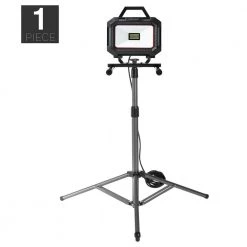 This rugged LED work light with tripod features an aluminum housing, steel base and clear glass lens. At 3500-Lumens it is bright enough to light up any dark work space. Adjustable light head and tripod.