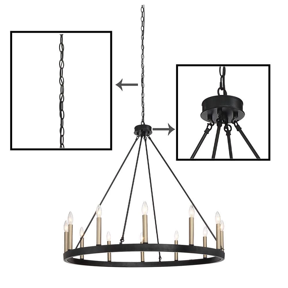 This 12-light chandelier with a wood-like main body and Gold tubes will make your decoration more gorgeous. It is suitable for various styles of decoration. It has a 96 in. adjustable chain, you can easily install the light to the height you like. This chandelier will be what you want.