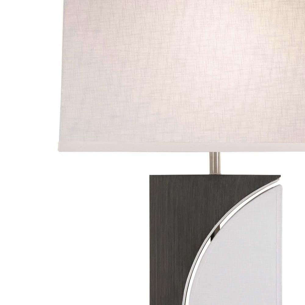 A must-have for the transitional living space, the half moon table lamp is made with real wood contrasting ash gray with a white half-moon. This stylish table lamp is smartly balanced by a rectangle linen shade for functionality on your table or desk.This Table Lamp for the Bedroom is Diligently Crafted From Sleek, Brushed Nickel Finished Steel Complemented by a Spectacular Charcoal Gray MDF Wood, With a Luxurious White Linen Lampshade.
