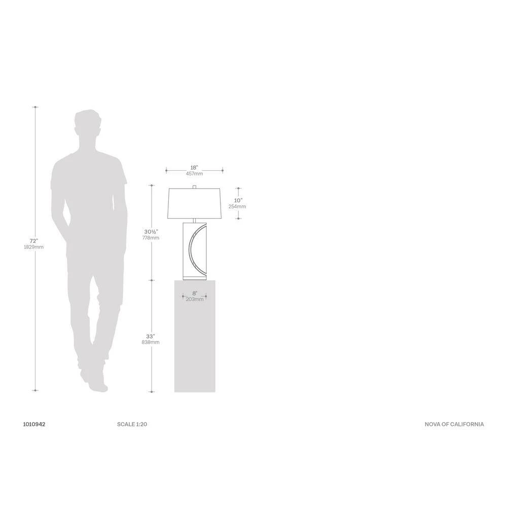 - Half Moon Table Lamp Dimensions: 30″ X 18″ X 9″