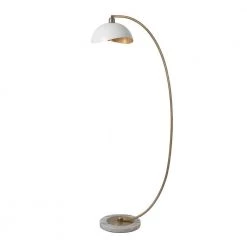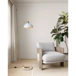 Based on a mid-century modern NOVA design from the 1960’s, the Luna Bella chairside arc floor lamp is perfect next to a love seat, club or wing chair. The sturdy arc is grounded with a real marble base and features weathered brass hardware and a hand-applied gold leaf interior on the inside of the white sculpted shade. Offering over 2,600 Lumens (150-Watt incandescent equivalent), this sculptural statement piece will become the focal point of your elegant room and provide warm, calming light for years to come.