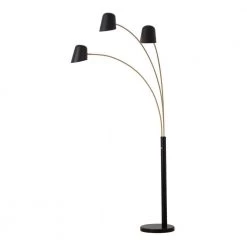 - Mix of matte black and weathered brass finishing updates the classic shade shape for a more modern style