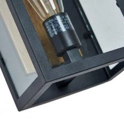 Clean lines and clear glass panels bring the modern retro 1-light black outdoor wall sconce into the modern era. A vintage-inspired incandescent bulb adds the right embellishment to create a work of art while the matte black finish complements all decor styles. The classic and timeless wrought Matt black finish with colorless clear glass and black lamp caps rustic design will coordinate and compliment the exterior of your home. Vivid, bright, durable, and elegant best describe this 1 Light Modern Wall Sconce. Hand-painted black and painted wood accents offer a modern style with a rustic touch. Pair this piece up for perfect symmetry at your front door, garage, patio, or porch entryway or anywhere in your outdoor living space. Weather-resistant construction with a long-lasting iron-painted finish makes this fixture an outstanding value. The rugged metal cage protects the glass shade and adds an interesting design element. Use up to a 60-Watt incandescent light bulb sold separately for more light and added security. with its fully adjustable brightness (bulbs and dimmer switches not included), you can easily allow you to switch lighting when inspiration strikes and create any ambiance to suit your mood.