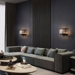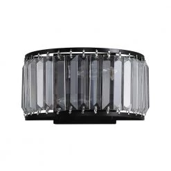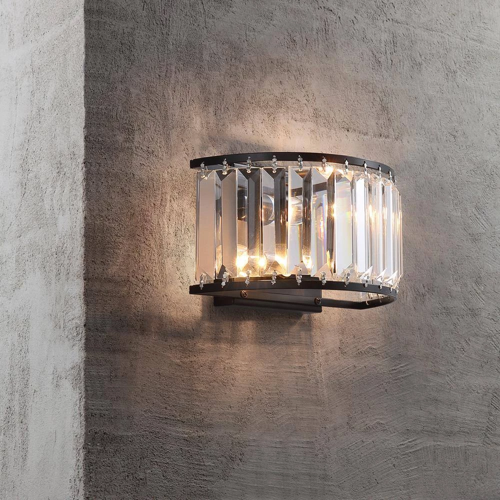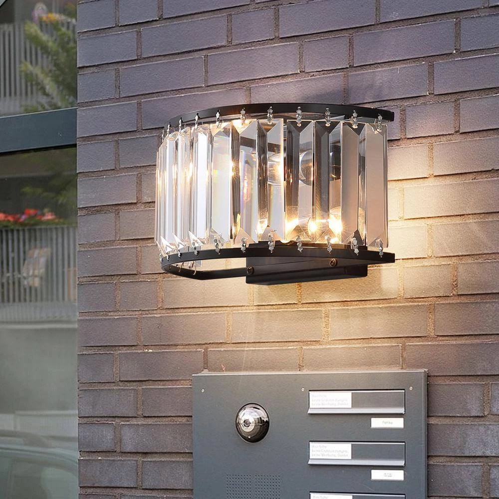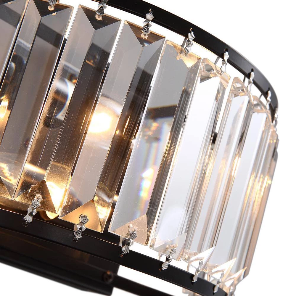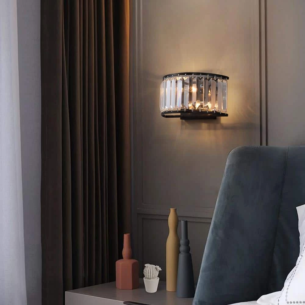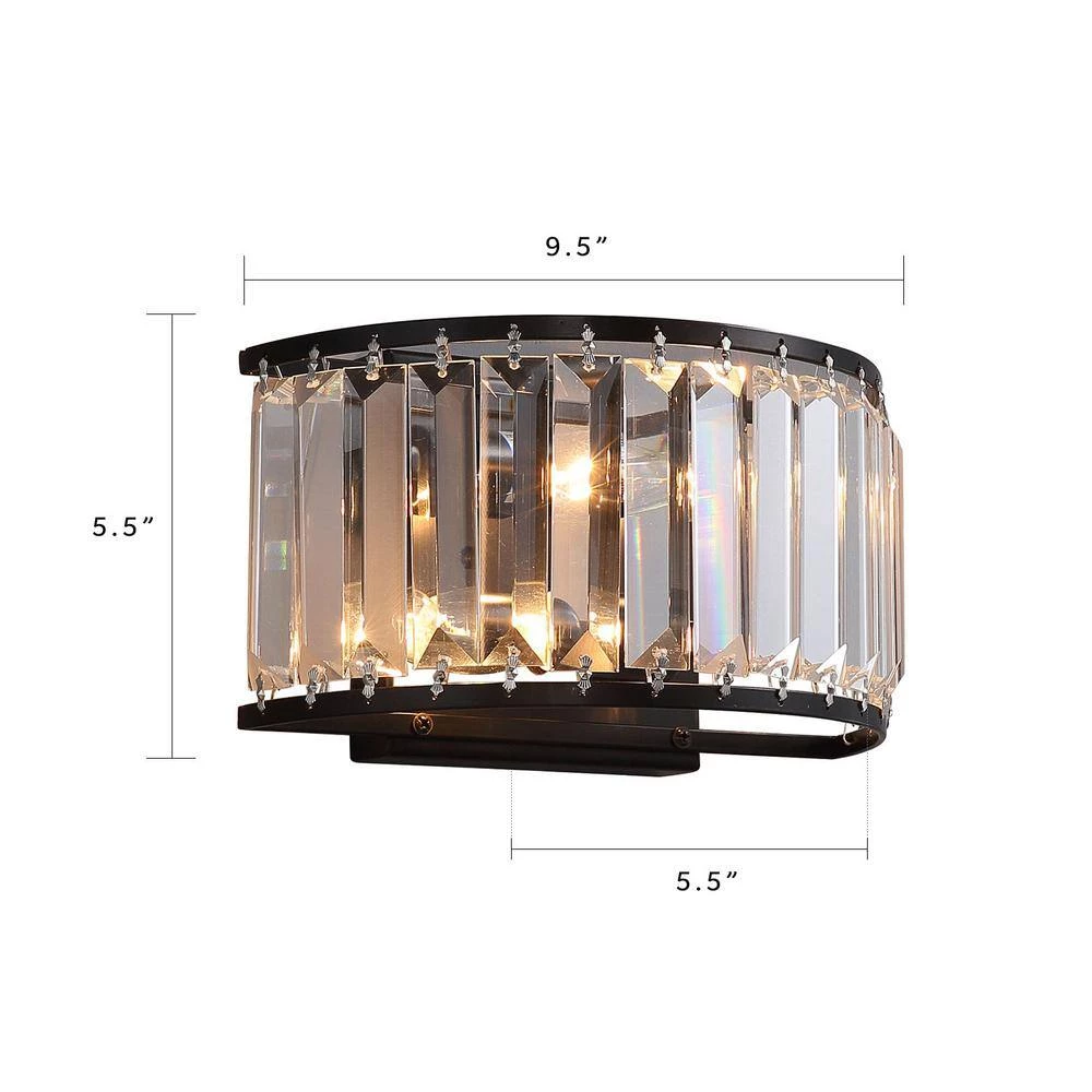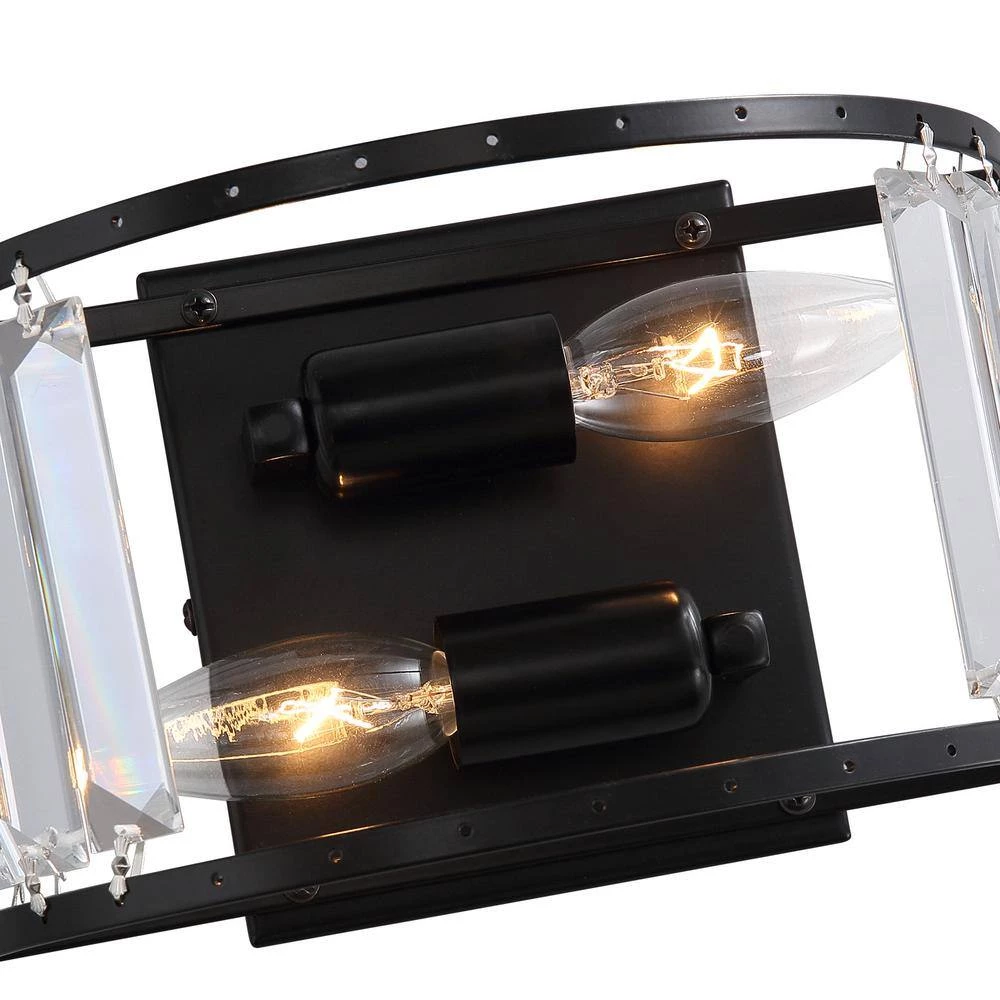 Experience elegance in your home with this modern contemporary sparkling crystal 2-Light black wall sconce. This stunning wall light features a crystal shade and a classic black finish frame for a dazzling look anywhere in your home. As the fixture emits a soft glow from its E12 base candle bulb (not included), the light reflects its crystalline details from all directions. Pair this charming candle holder with a wall for a mystical ambiance, or incorporate it into a dining room set to provide extra light when you need it most.