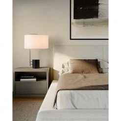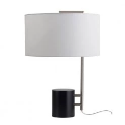 A sculptural statement piece, The Palos Verdes Table Lamp was inspired by a NOVA design from the early 1960’s. This statement piece is firmly grounded by a cylindrical wood base and boasts a mid-century modern design finished with a simple, off-center linen shade. Generating over 2,600 Lumens (150-Watt incandescent equiv.) of energy-saving light, this table lamp fills a room with light or dims down to set a calming mood. A beautiful addition to living rooms on a side table or in bedrooms on a nightstand.