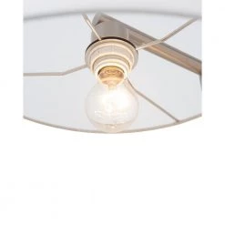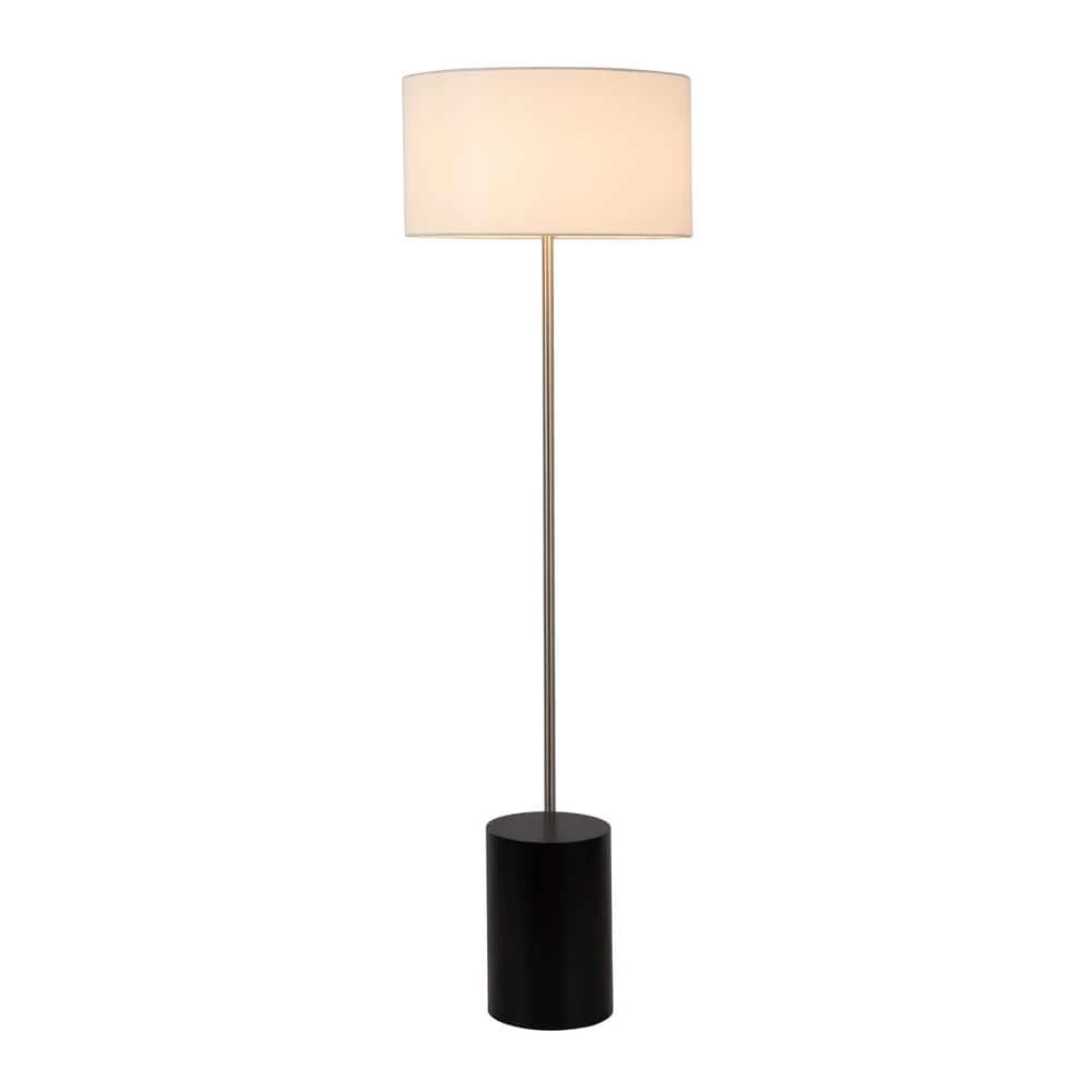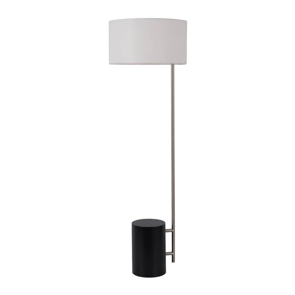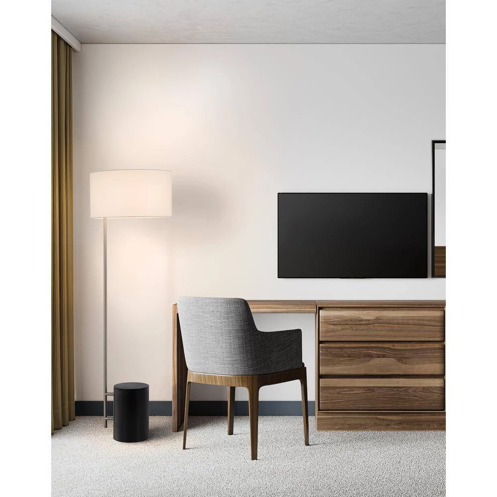 The Palos Verdes Floor Lamp is A beautiful addition to living rooms next to a love seat, club chair or wing chair. Firmly grounded by a cylindrical wood base, this statement piece boasts a mid-century modern design finished with a simple, off-center linen shade that cases a warm, soothing light. Generating over 2,600 Lumens (150-Watt incandescent equiv.) of energy-saving light, this floor lamp fills a room with light or dims down to set a restful mood.