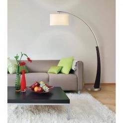 - Beautify your home with this exquisite Plimpton arc lamp, featuring a dark brown and brushed nickel finish with steel base and a white linen shade