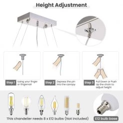 - Light source: E12 bulb x 8, maximum 40-Watt (bulb not included), works with incandescent, LED, CFL, halogen or color changing bulbs up to 40-Watt