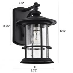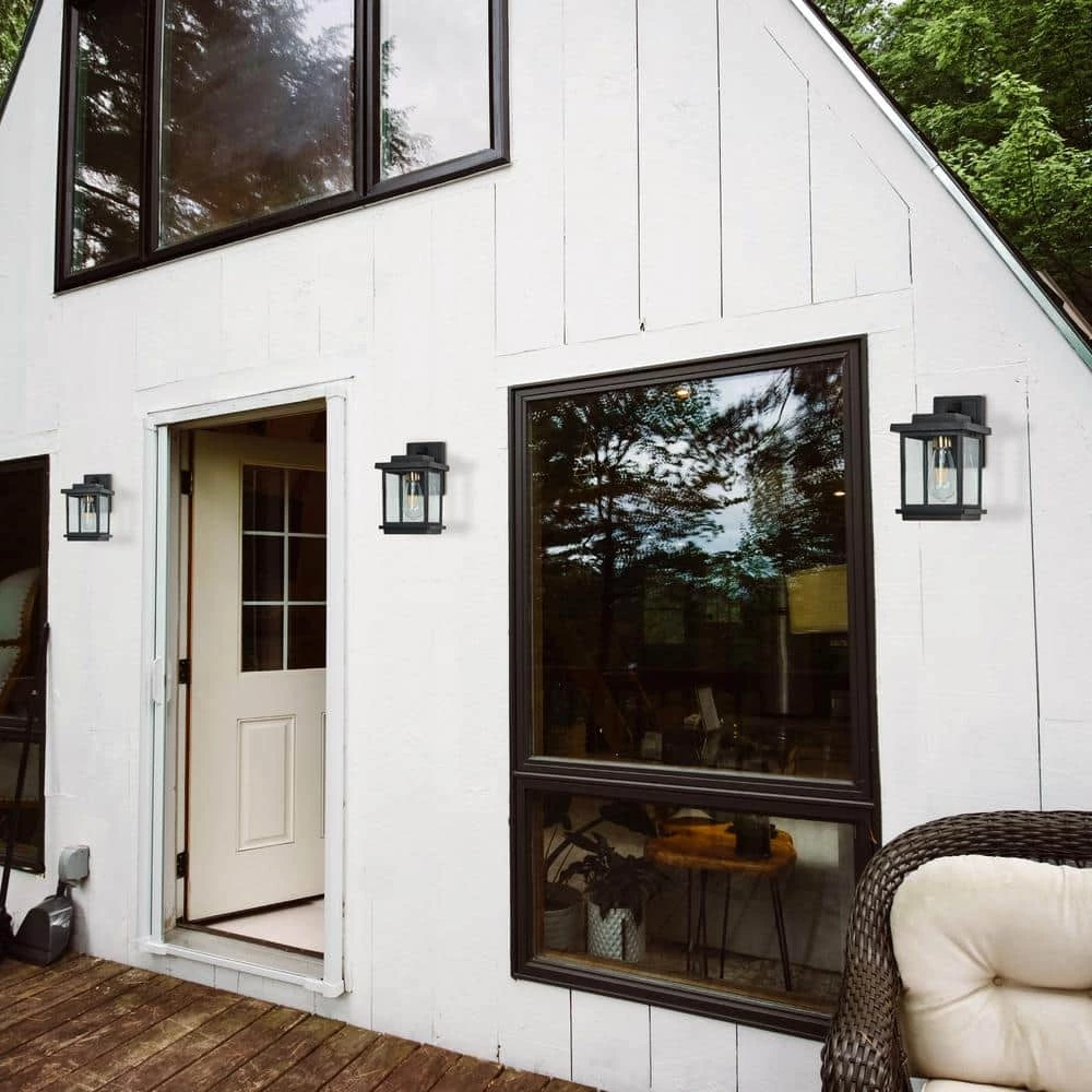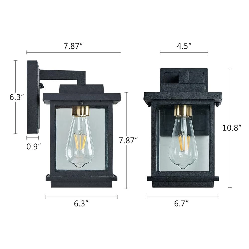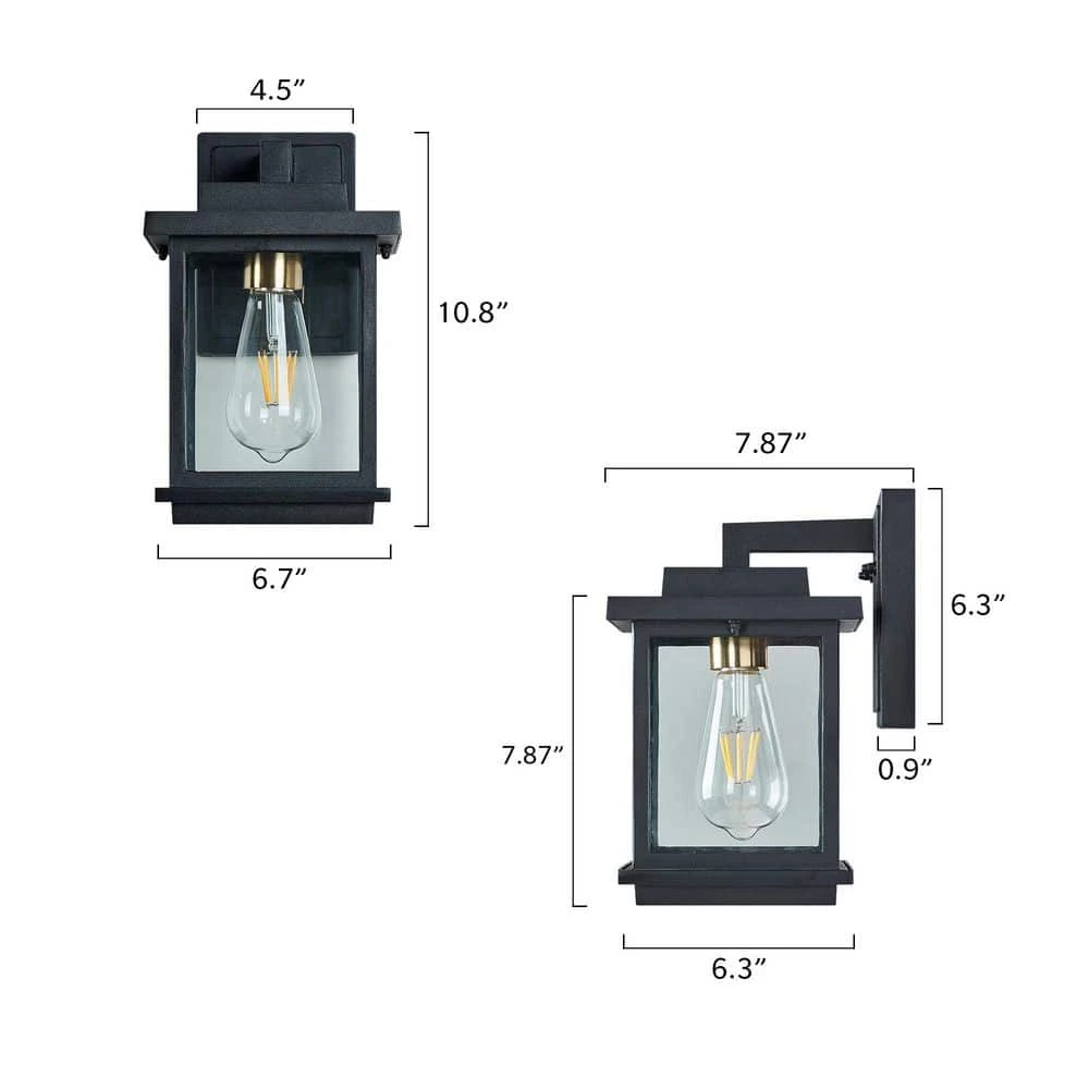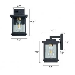 The Square 1-Light Black and Gold Outdoor Sconce has a handsome sleek appearance that brings a bright and practical touch to your exterior spaces. This updated modern design comes in a square black frame with gold finish accents. Clear glass panels offer a full view of its beautiful vintage Edison style bulb (Sold Separately). Pair two of these on either side of a doorway, or spread them out along a wall to lighten up the dark nights. Modern contemporary design aesthetics create a definitive geometric profile, creating a brilliant addition to your outdoor areas.
